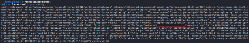 INCLUDEPICTUREis a Word field code that tells Word to pull an image from a file or URL.- The URL points to a Canarytoken endpoint.